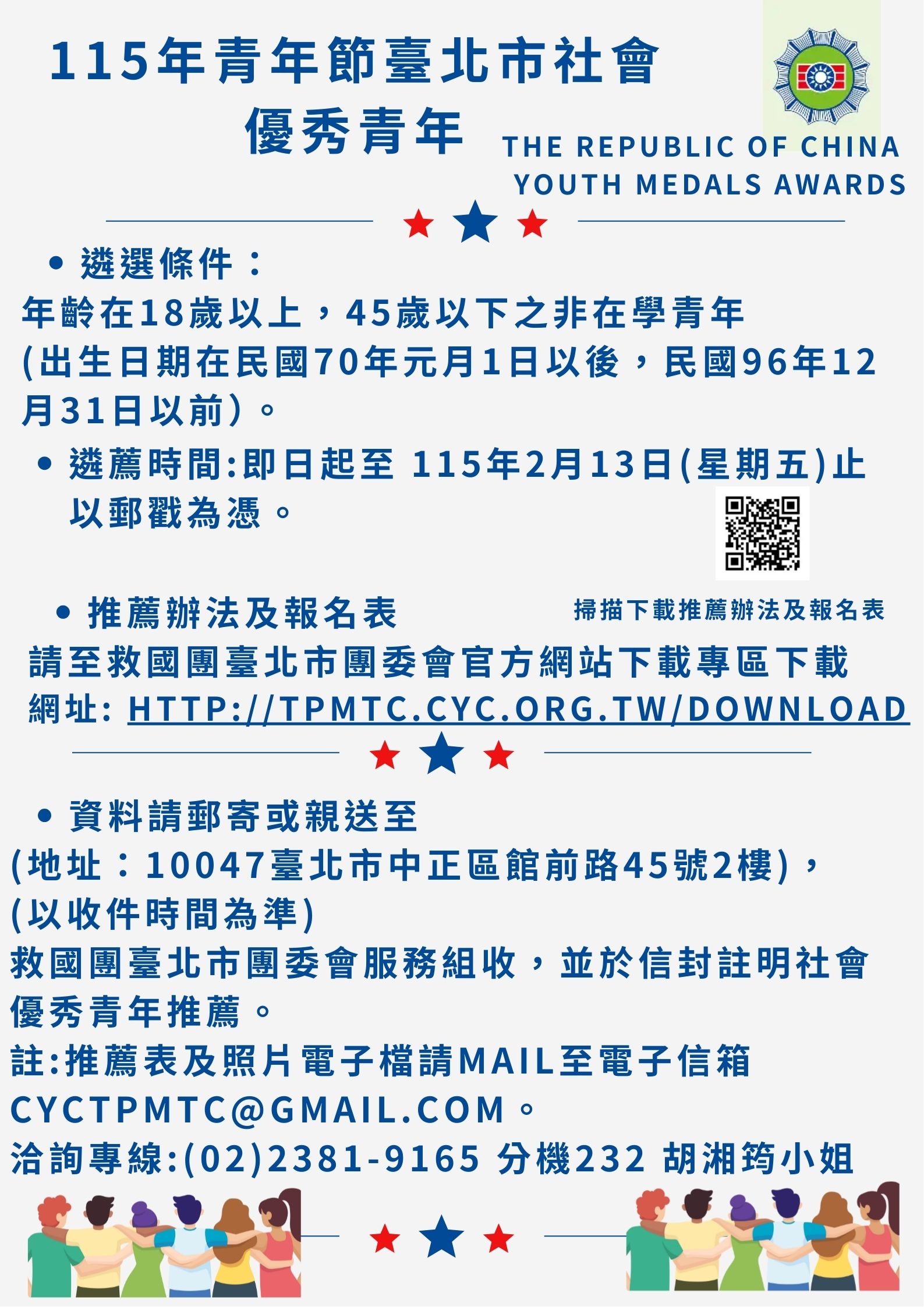 115年青年節臺北市社會優秀青年表揚 ~開跑啦